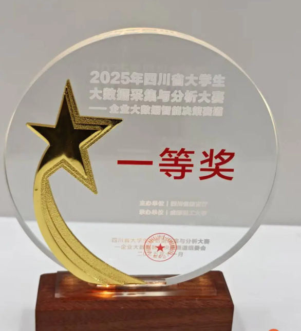 近日,2025 四川省大学生大数据采集与分析大赛企业大数据智能决策赛道决赛在成都理工大学圆满落幕。我校经济贸易系会计专业夏巧玲、苏熙钦、喻兴宏三位同学组成的 “财贸双全队”表现优异,荣获大赛一等奖,为学校赢得了荣誉!