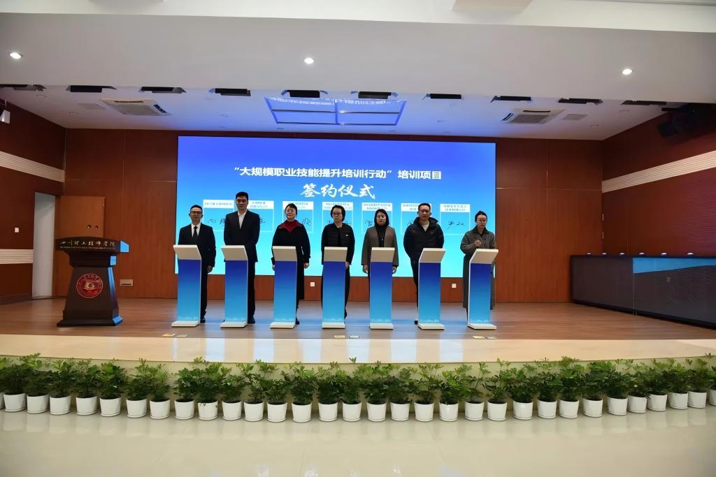 会上,公布了职业技能承训项目,涵盖省本级示范培训、乡村振兴培训、区县品牌班、企业新型学徒制培训、企业订单班五大类,包括工业机器人系统操作员、“鱼凫药康师”等特色项目。未来,训练院将持续深化产教融合、服务就业民生,推动“技能照亮前程”真正落地见效。现场还举行了校企合作签约,四川理工技师学院与通德药业、百利天恒、中国联通等六家重点企业签约。