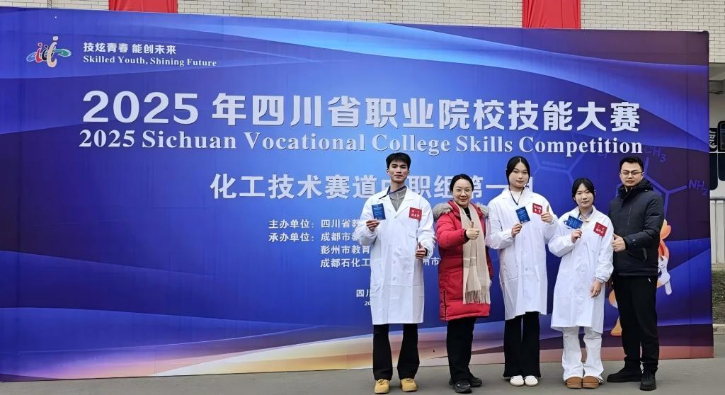 捷报频传,佳绩续写。继我院学子在2025年四川省职业院校技能大赛艺术设计赛道荣获一等奖后,近日再传喜讯——在化工技术和食品与粮食两大赛道中,我院参赛团队奋勇争先,双双斩获“银奖”,彰显了我院学子扎实的专业素养与出色的综合能力。