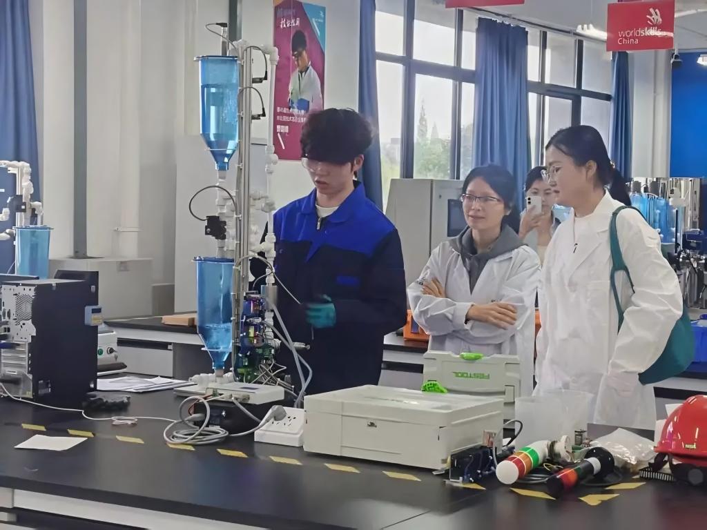 调研组先后参观了药试剂产业学院、四川省水处理技术职业竞赛集训中心及蒋雯菁技能大师工作室,深入了解实训设备配置、研发成果转化、技术攻关进展及“师带徒”技能传承等情况。