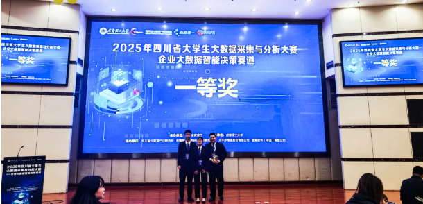 近日,2025 四川省大学生大数据采集与分析大赛企业大数据智能决策赛道决赛在成都理工大学圆满落幕。我校经济贸易系会计专业夏巧玲、苏熙钦、喻兴宏三位同学组成的 “财贸双全队”表现优异,荣获大赛一等奖,为学校赢得了荣誉!