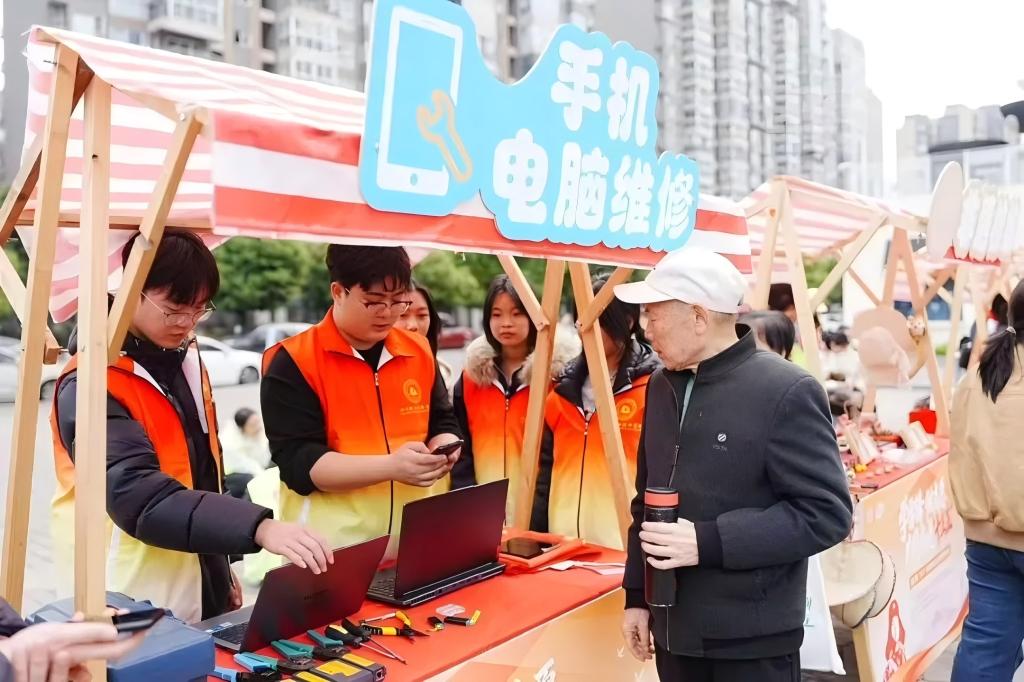 活动现场,我院志愿者立足信息技术专业优势,设立手机电脑维修服务点,为社区居民提供故障排查、系统优化、智能设备使用指导等便民服务。志愿者们耐心细致的服务和扎实的专业能力广受好评,真正做到了“学以致用、技以助人”。
